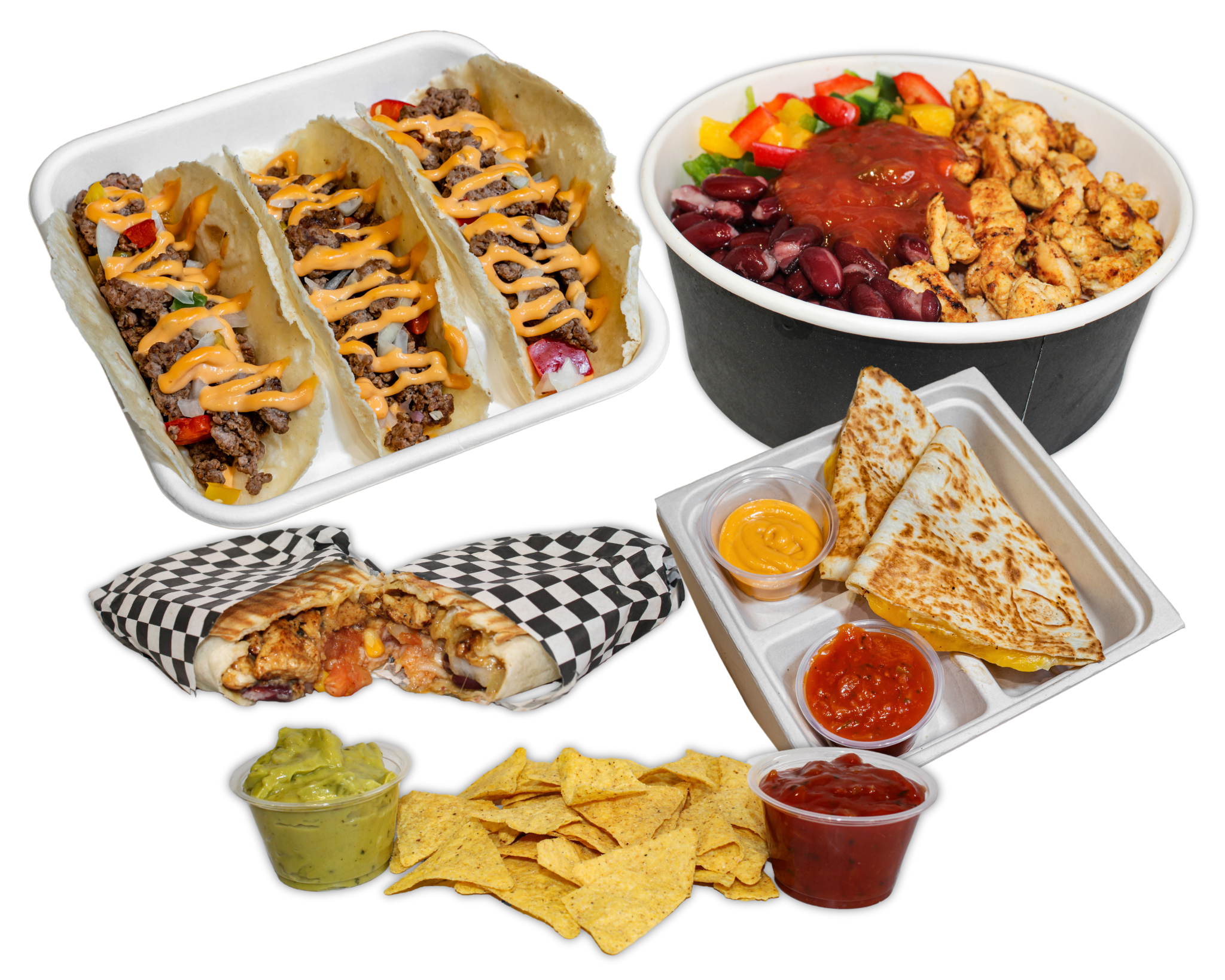 TORTILLA DE BLÉ OU MAÏS 2 LÉGUMES + 1 VIANDE + 1 SAUCE AU CHOIX